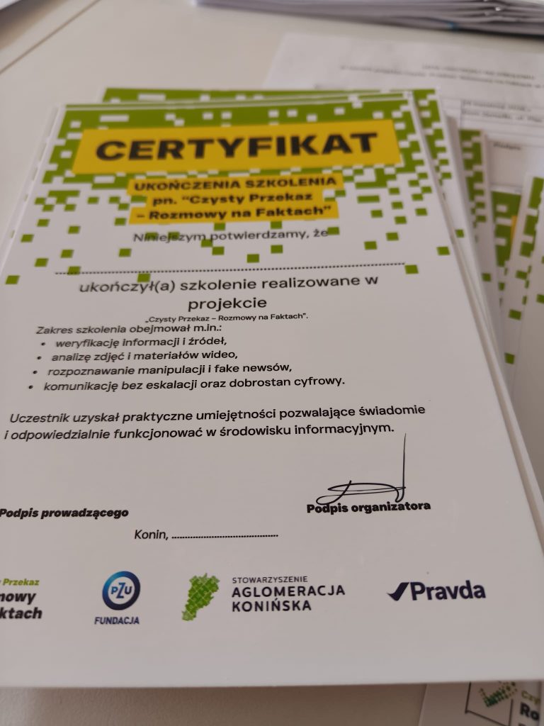Serdeczne podziękowania kierujemy do wszystkich, którzy znaleźli czas i chęci, by wziąć udział w warsztatach. Wasza obecność i aktywność podczas zajęć są najlepszym dowodem na to, że edukacja medialna jest dziś potrzebna i ważna. To właśnie dzięki Wam wiedza o rozpoznawaniu dezinformacji, weryfikacji informacji i odpowiedzialnym korzystaniu z mediów trafi wkrótce do kolejnych uczniów w regionie. Dziękujemy za zaangażowanie- i do zobaczenia na kolejnych etapach projektu!