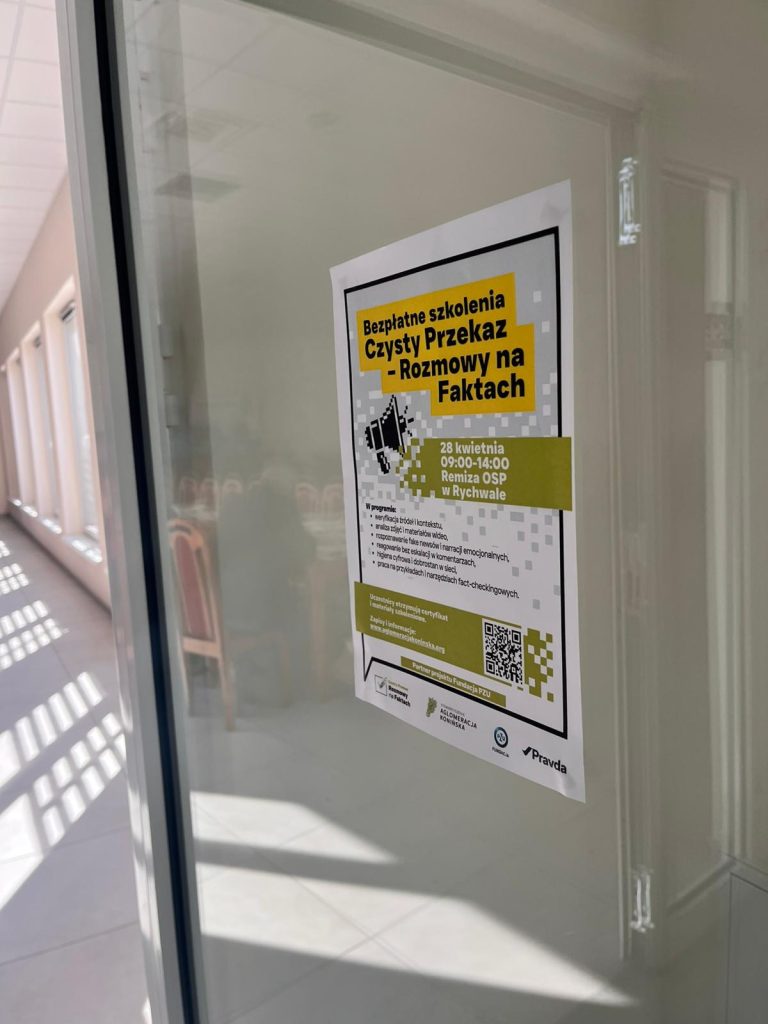 Kolejne moduły poświęcone były rozróżnianiu informacji, opinii i manipulacji oraz zjawiskom dezinformacyjnym: misinformacji (nieintencjonalnemu wprowadzaniu w błąd), dezinformacji (celowym fałszerstwom) i malinformacji (selektywnemu wykorzystaniu prawdy w celu szkodzenia). Uczestnicy analizowali realne przykłady — fałszywe nagłówki z polskich serwisów — i ćwiczyli rozpoznawanie językowych sygnałów ostrzegawczych.