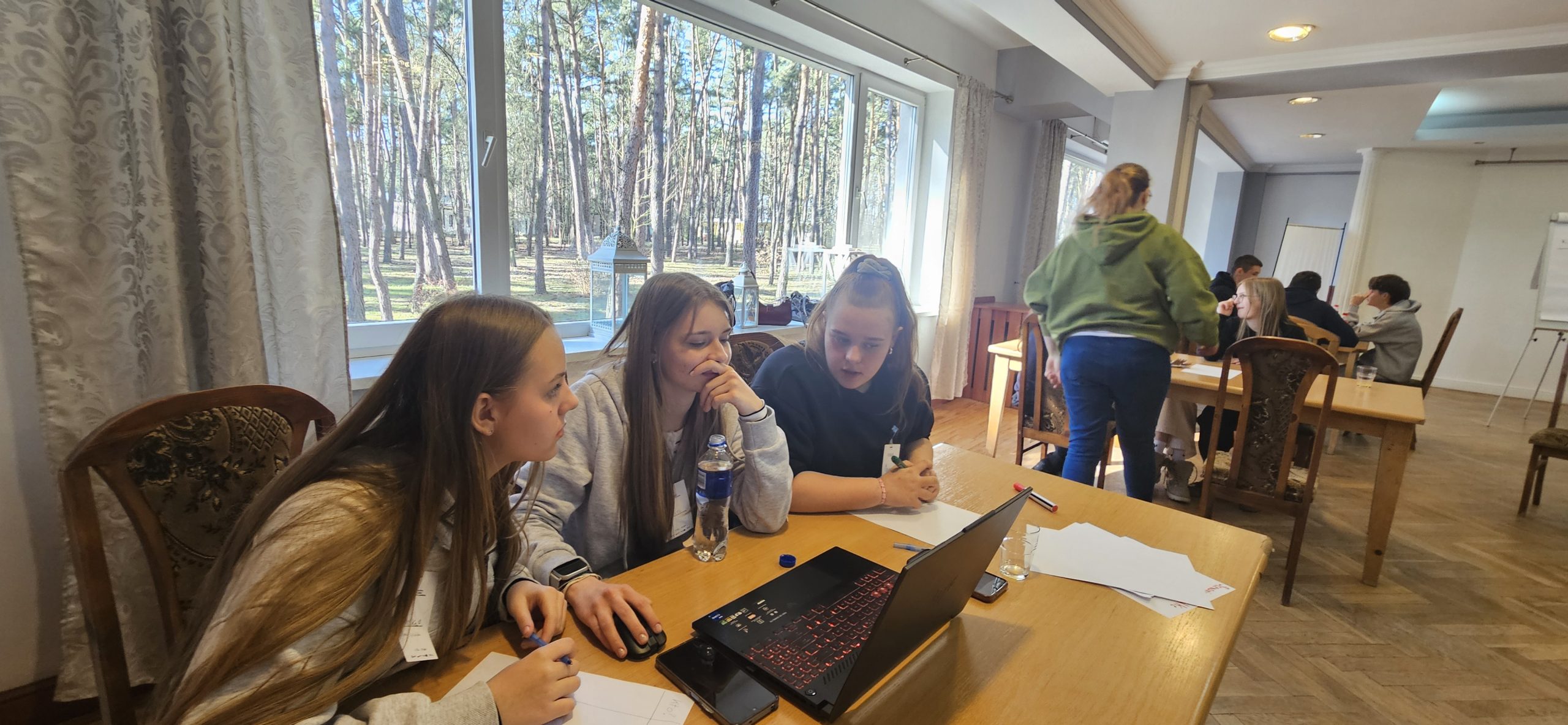 Tego dnia pojawił się też bardzo miły, spontaniczny moment. Z okazji Dnia Kobiet chłopcy przygotowali drobną niespodziankę i serdeczne życzenia. Ten prosty gest wywołał sporo uśmiechów i był pięknym dowodem na to, że przez kolejne zjazdy powstała tu nie tylko grupa projektowa, ale prawdziwa wspólnota – pełna życzliwości, wzajemnego wsparcia i dobrej energii. 🌷