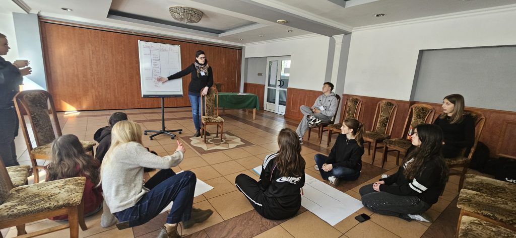 Podczas wspólnego podsumowania uczestnicy mogli zobaczyć, jak bardzo zmieniła się grupa – od pierwszych spotkań i wzajemnego poznawania się, po moment, w którym młodzi ludzie świadomie planują i realizują własne inicjatywy społeczne.