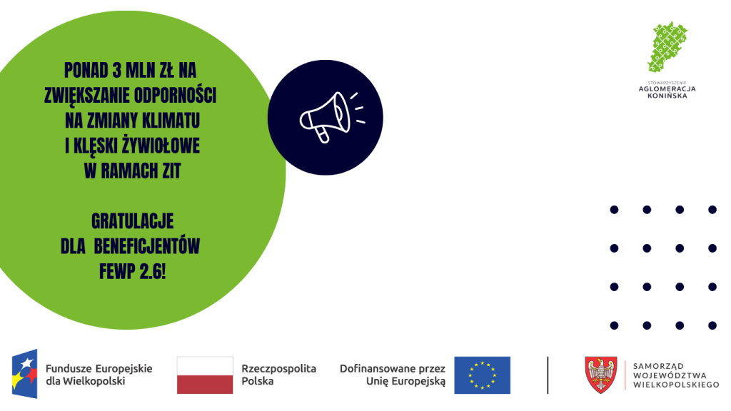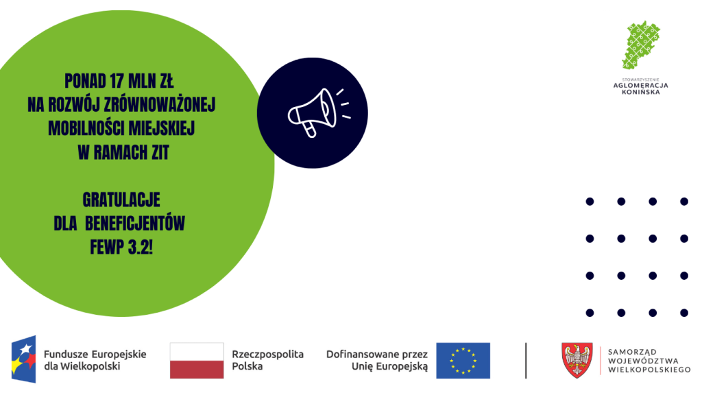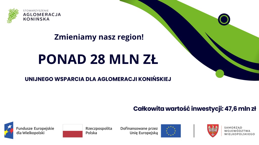 Aglomeracja Konińska konsekwentnie wykorzystuje środki Zintegrowanych Inwestycji Terytorialnych (ZIT), realizowanych w ramach Programu Fundusze Europejskie dla Wielkopolski 2021–2027. Rozstrzygnięte nabory potwierdzają skuteczność współpracy samorządów i instytucji oraz ich zaangażowanie w rozwój nowoczesnych, bezpiecznych i przyjaznych mieszkańcom usług publicznych.