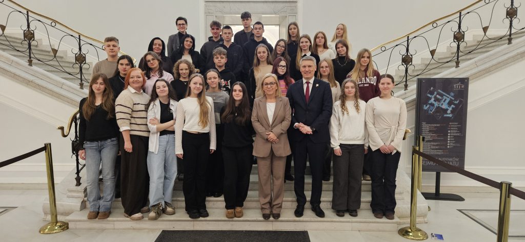 – „Odwiedziliśmy Sejm Rzeczypospolitej Polskiej, zapoznając się z funkcjonowaniem parlamentu. W Sejmie widzieliśmy się również z posłem Marcinem Skonieczką oraz z minister Pauliną Hennig-Kloską” – relacjonuje Antoni.