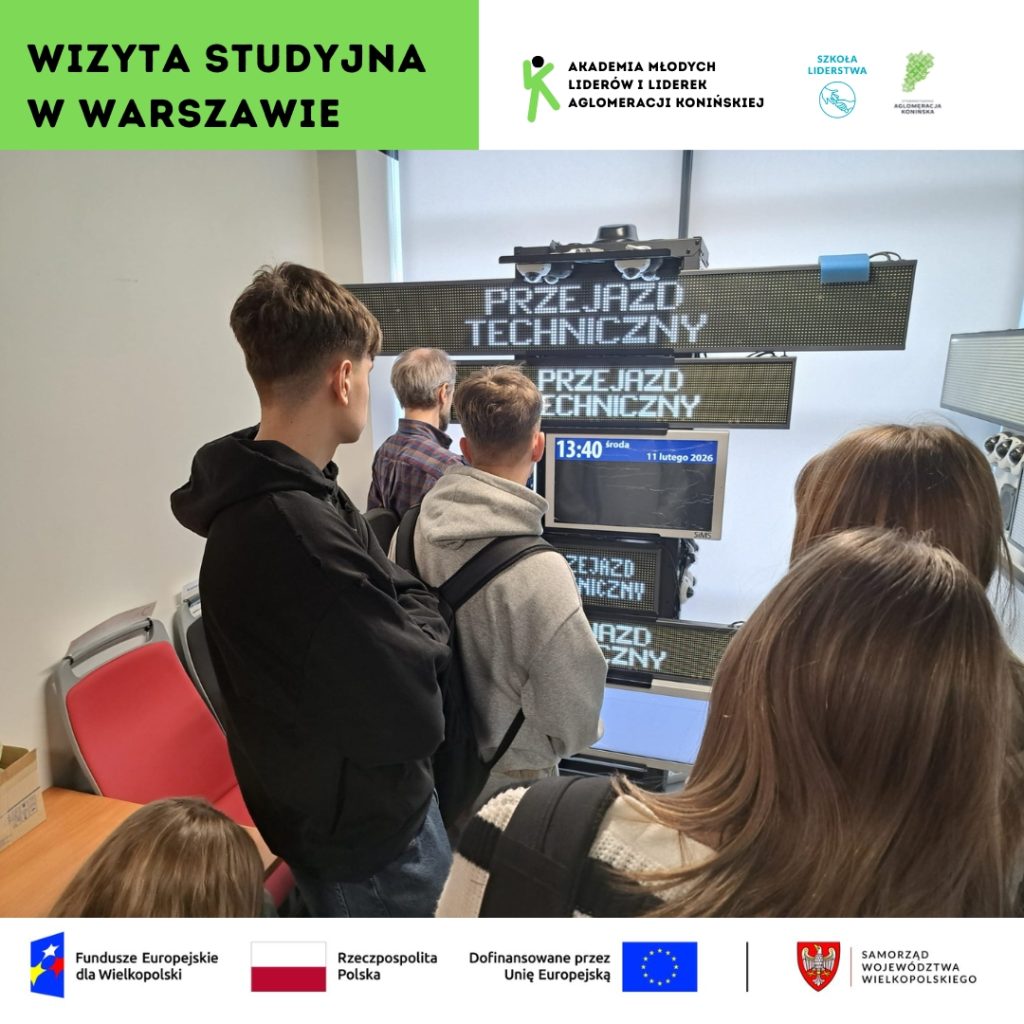 W dniach 10–11 lutego uczestniczki i uczestnicy projektu „Akademia Młodych Liderów i Liderek Aglomeracji Konińskiej” wzięli udział w dwudniowej wizycie studyjnej w Warszawie. Wyjazd miał charakter edukacyjno-rozwojowy: łączył poznawanie pracy mediów i instytucji publicznych z warsztatami wspierającymi projekty lokalne oraz integracją w zróżnicowanych, zadaniowych grupach.